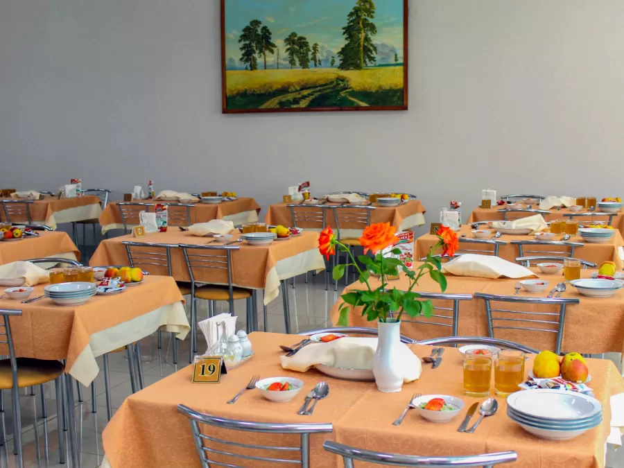 Классическим вариантом в лечебно-реабилитационном центре «Курортная больница» является трехразовое питание. Но при наличии медицинских показаний и отдельных заболеваниях пациента, количество приемов пищи может быть увеличено до четырех, пяти или даже шести раз в день. Для трапез подготовлена светлая столовая с просторным обеденным залом. Большое количество столиков и посадочных мест позволяет с комфортом разместиться каждому гостю. Эстетичную обстановку дополняет аккуратная сервировка и своевременная подача - ждать своей порции не придется. Благодаря вежливому обслуживанию и аппетитному оформлению блюд у посетителей сразу поднимается настроение.